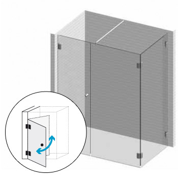 2 Pendeltürbänder 90° Glas - Wand nach innen und außen öffnend
